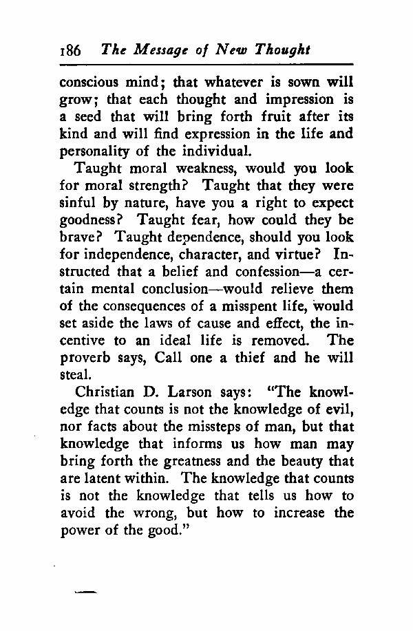 Christian D. Larson says: "The knowledge that counts is not the knowledge of evil, nor facts about the missteps of man, but that knowledge that informs us how man may bring forth the greatness and the beauty that are latent within. The knowledge that counts is not the knowledge that tells us how to avoid the wrong, but how to increase the power of the good."