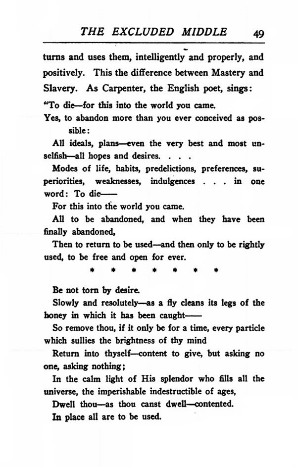 and uses them, intelligently and properly, and positively. This the difference between Mastery and Slavery. As Carpenter, the English poet, sings: