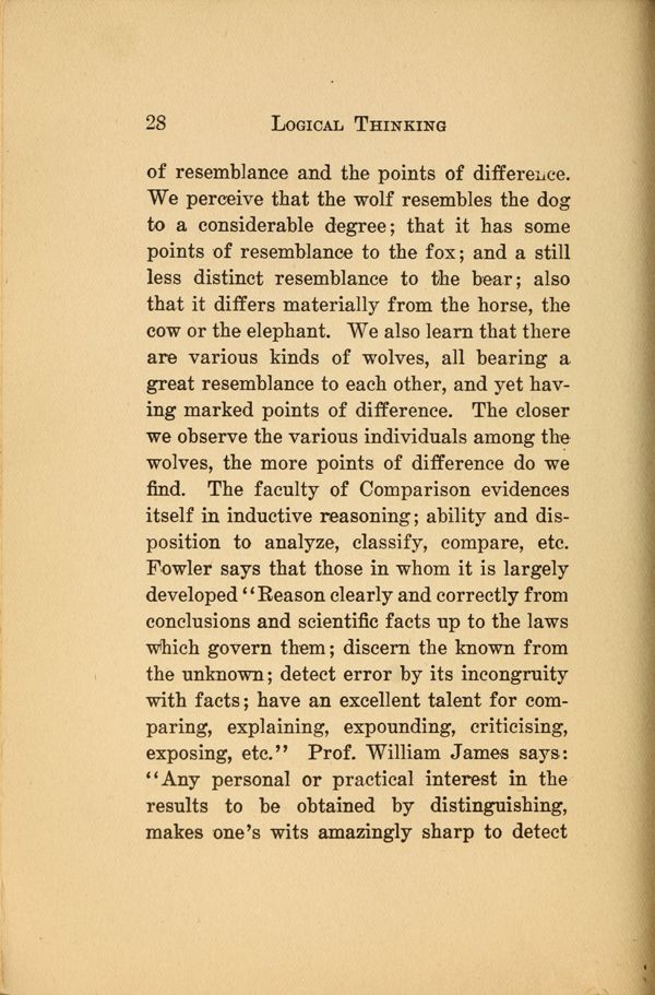 1 - Reasoning - 2 - Process of Reasoning - 3 - The Concept - 4 - The Use of Concepts - 5 - Concepts and Images - 6 - Terms - 7 - Meaning of Terms - 8 - Judgments - 9 - Propositions - 10 - Immediate Reasoning - 11 - Inductive Reasoning - 12 - Reasoning by Induction - 13 - Theory and Hypotheses - 14 - Making and Testing Hypotheses - 15 - Deductive Reasoning - 16 - The Syllogism - 17 - Varieties of Syllogisms - 18 - Reasoning by Analogy - 19 - Fallacies -