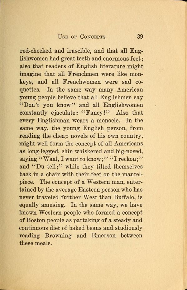 1 - Reasoning - 2 - Process of Reasoning - 3 - The Concept - 4 - The Use of Concepts - 5 - Concepts and Images - 6 - Terms - 7 - Meaning of Terms - 8 - Judgments - 9 - Propositions - 10 - Immediate Reasoning - 11 - Inductive Reasoning - 12 - Reasoning by Induction - 13 - Theory and Hypotheses - 14 - Making and Testing Hypotheses - 15 - Deductive Reasoning - 16 - The Syllogism - 17 - Varieties of Syllogisms - 18 - Reasoning by Analogy - 19 - Fallacies -
