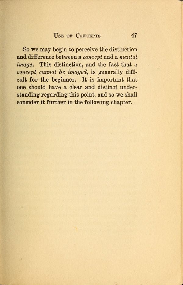 1 - Reasoning - 2 - Process of Reasoning - 3 - The Concept - 4 - The Use of Concepts - 5 - Concepts and Images - 6 - Terms - 7 - Meaning of Terms - 8 - Judgments - 9 - Propositions - 10 - Immediate Reasoning - 11 - Inductive Reasoning - 12 - Reasoning by Induction - 13 - Theory and Hypotheses - 14 - Making and Testing Hypotheses - 15 - Deductive Reasoning - 16 - The Syllogism - 17 - Varieties of Syllogisms - 18 - Reasoning by Analogy - 19 - Fallacies -