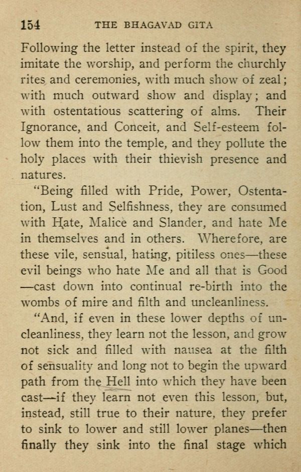 "Being filled with Pride, Power, Ostentation, Lust and Selfishness, they are consumed with H^ate, Malice and Slander, and hate Me in themselves and in others. Wherefore, are these vile, sensual, hating, pitiless ones --- these evil beings who hate Me and all that is Good --- cast down into continual re-birth into the wombs of mire and filth and uncleanliness.