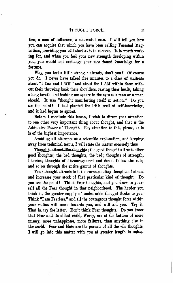 Before I conclude this lesson, I wish to direct your attention to one other very important thing about thought, and that is the Adductive Power of Thought. Pay attention to this; please as it is of the highest importance.