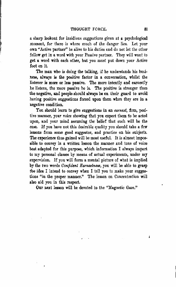 Our next lesson will be devoted to the "Magnetic Gaze."