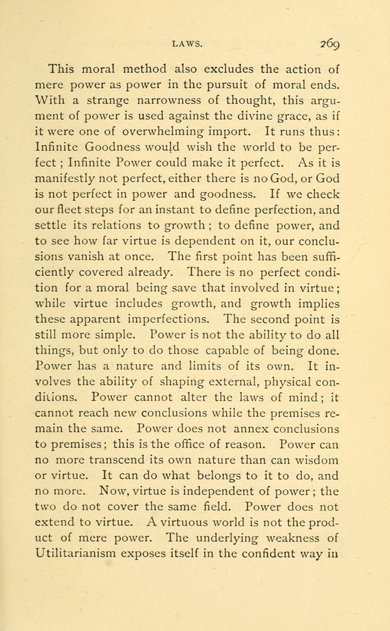 Contents - Nature of God - p. 7 - Being of God; Unsatisfactory forms of proof - page 28 - The Argument in Outline for the Being of God - page 46 - Proof of the Being of God Found in the Organic World - page 79 - Proof of the Being of God Found in the Vegetable Kingdom - page 122 - Proof of the Being of God Found in the Animal Kingdom - page 159 - Proof of the Being of God Found in the Rational Kingdom - page 190 - The Proofs of the goodness of God - page 261 - Immortality - page 288 Index