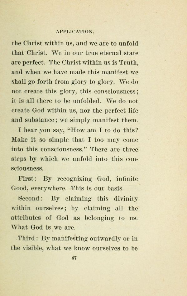 I hear you say, "How am I to do this? Make it so simple that I too may come into this consciousness." There are three steps by which we unfold into this consciousness.