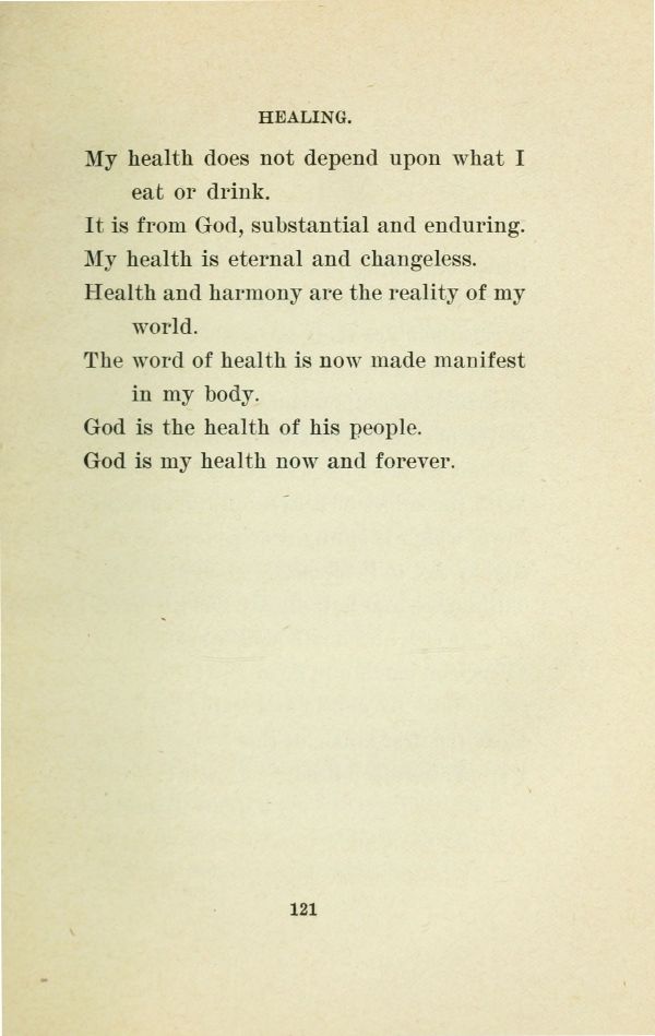 It is from God, substantial and enduring. My health is eternal and changeless. Health and harmony are the reality of my world.