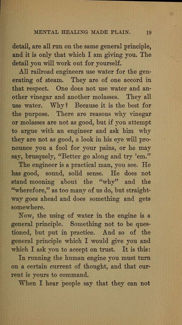 All railroad engineers use water for the generating of steam. They are of one accord in that respect. One does not use water and another vinegar and another molasses. They all use water. Why? Because it is the best for the purpose. There are reasons why vinegar or molasses are not as good, but if you attempt to argue with an engineer and ask him why they are not as good, a look in his eye will pronounce you a fool for your pains, or he may say, brusquely, "Better go along and try 'em."