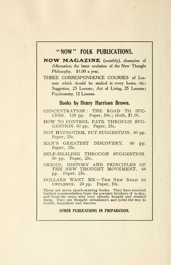 We work with New Thought Seekers and Sharers around the world insuring that all New Thought Texts in the Public Domain are available for you to read on the web for free, forever!