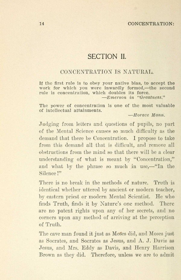 The cave man found it just as Moses did, and Moses just as Socrates, and Socrates as Jesus, and A. J. Davis as Jesus, and Mrs. Eddy as Davis, and Henry Harrison Brown as they did. Therefore, unless we are to admit