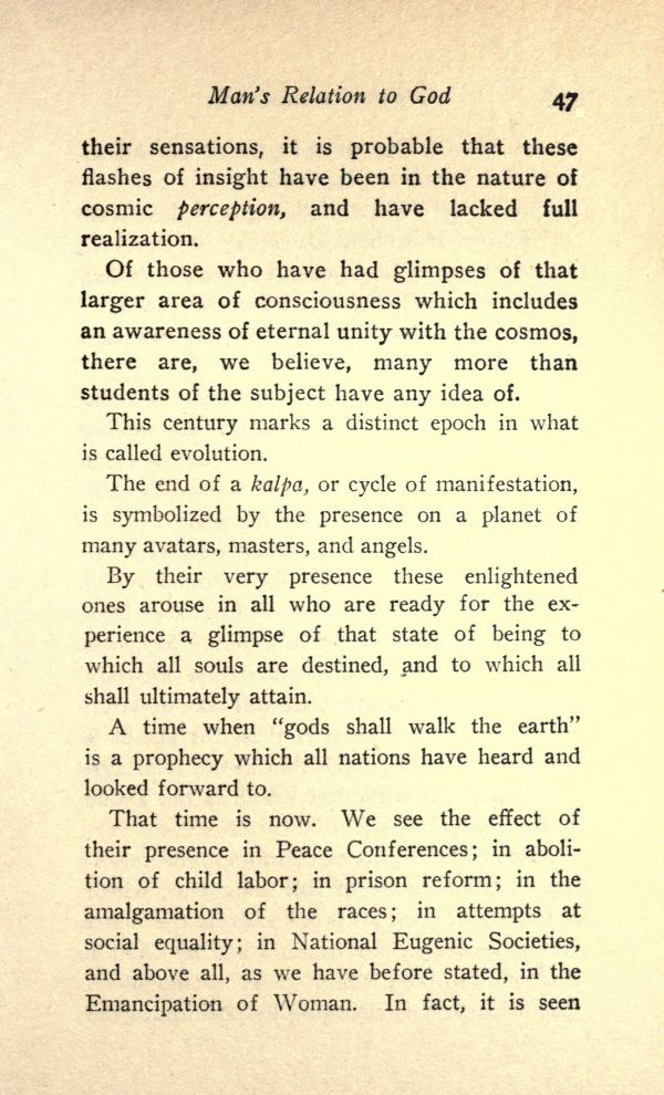 The end of a kalpa, or cycle of manifestation, is symbolized by the presence on a planet of many avatars, masters, and angels.