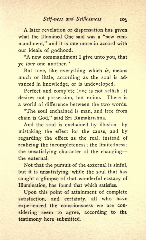 Not that the pursuit of the external is sinful, but it is unsatisfying, while the soul that has caught a glimpse of that wonderful ecstasy of Illumination, has found that which satisfies.