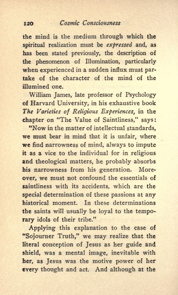 William James, late professor of Psychology of Harvard University, in his exhaustive book The Varieties of Religious Experiences, in the chapter on "The Value of Saintliness," says: