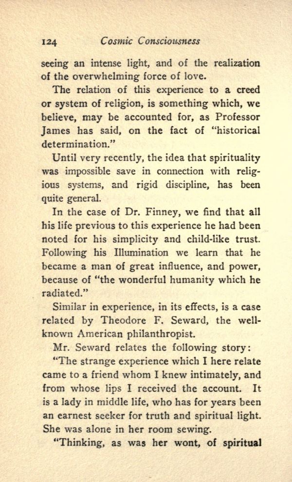 In the case of Dr. Finney, we find that all his life previous to this experience he had been noted for his simplicity and child-like trust. Following his Illumination we learn that he became a man of great influence, and power, because of "the wonderful humanity which he radiated."