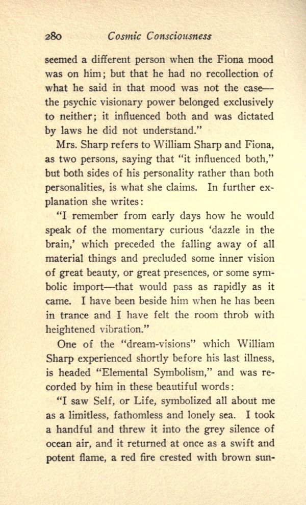 Mrs. Sharp refers to William Sharp and Fiona, as two persons, saying that "it influenced both," but both sides of his personality rather than both personalities, is what she claims. In further explanation she writes: