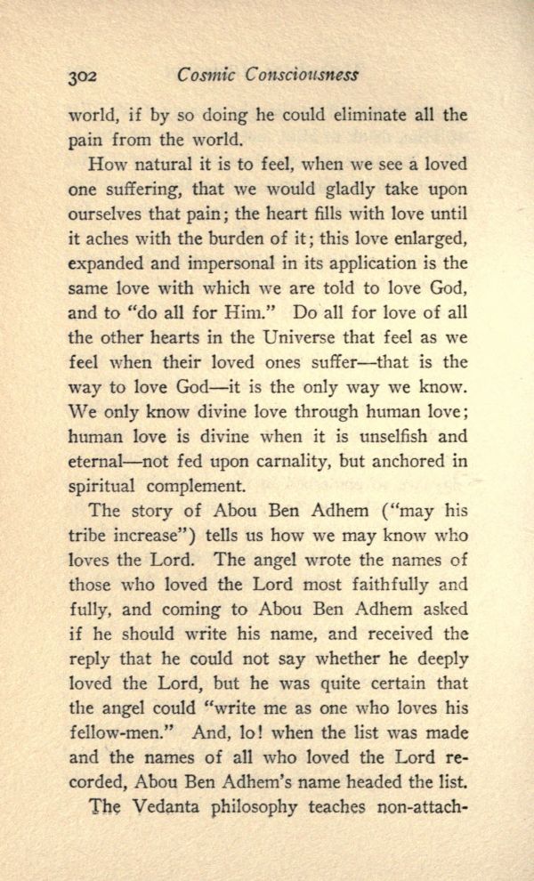 The story of Abou Ben Adhem ("may his tribe increase") tells us how we may know who loves the Lord. The angel wrote the names of those who loved the Lord most faithfully and fully, and coming to Abou Ben Adhem asked if he should write his name, and received the reply that he could not say whether he deeply loved the Lord, but he was quite certain that the angel could "write me as one who loves his fellow-men." And, lo! when the list was made and the names of all who loved the Lord recorded, Abou Ben Adhem's name headed the list.