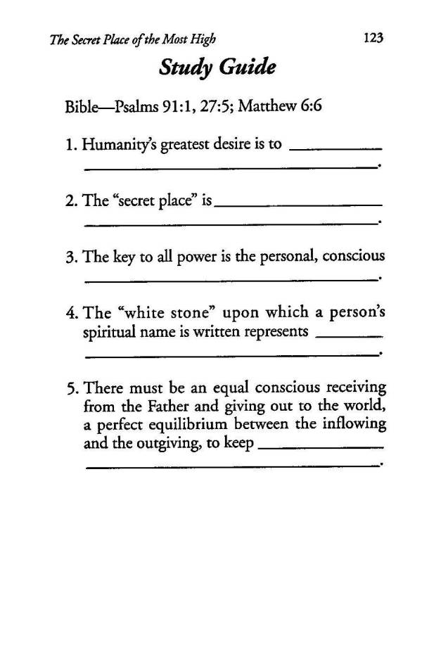 Bondage or Liberty, Which? - Statement of Being - Thinking - Denials - Affirmations - Faith - Definition of Terms: Chemicalization, Personality, and Individuality - Spiritual Understanding - The Secret Place of the Most High - Spiritual Gifts - Unity of the Spirit - Glossary of Truth Terms - Index - Contents -