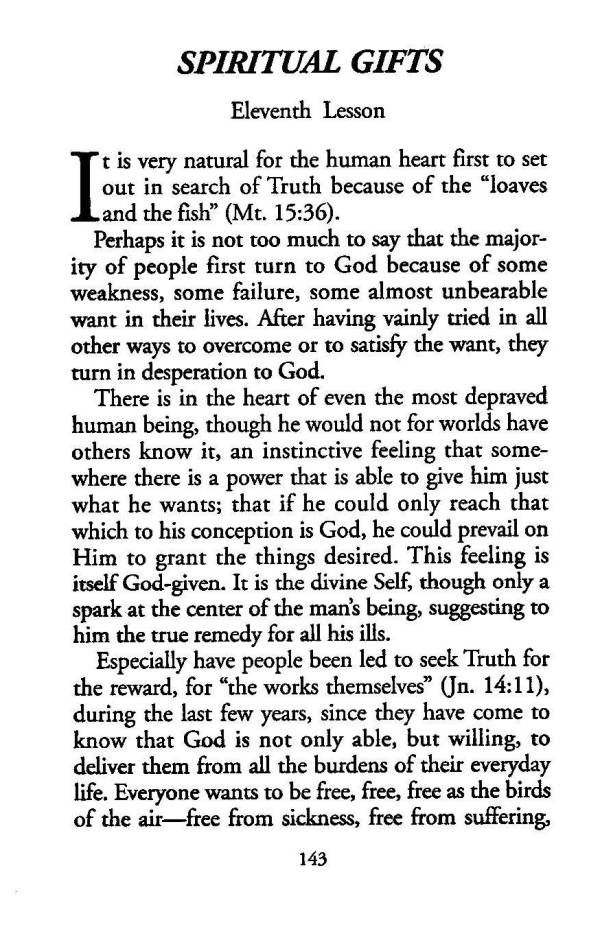Especially have people been led to seek Truth for the reward, for "the works themselves" (Jn. 14:11), during the last few years, since they have come to know that God is not only able, but willing, to deliver them from all the burdens of their everyday life. Everyone wants to be free, free, free as the birds of the air --- free from sickness, free from suffering,