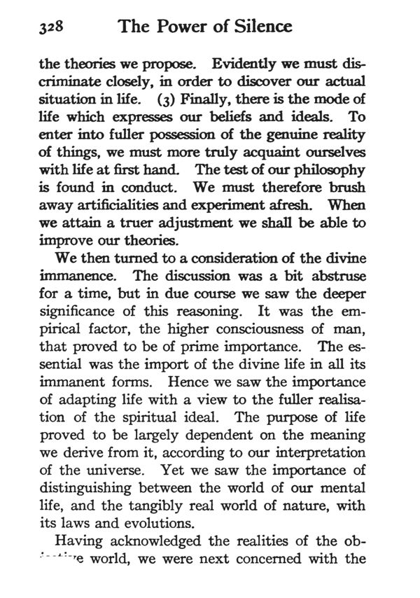 Preface to the New Edition - The Point of View - Immanent God - World of Manifestation - Nature of Existence - Mental Life - Meaning of Idealism - Nature of Mind - Meaning of Suffering - Duality of Self - Adjustment - Poise - Self-Help - Entering the Silence - The Outlook - Contents - Index