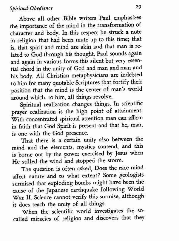 Above all other Bible writers Paul emphasizes the importance of the mind in the transformation of character and body. In this respect he struck a note in religion that had been mute up to this time; that is, that spirit and mind are akin and that man is related to God through his thought. Paul sounds again and again in various forms this silent but very essential chord in the unity of God and man and man and his body. All Christian metaphysicians are indebted to him for many quotable Scriptures that fortify their position that the mind is the center of man's world around which, to him, all things revolve.