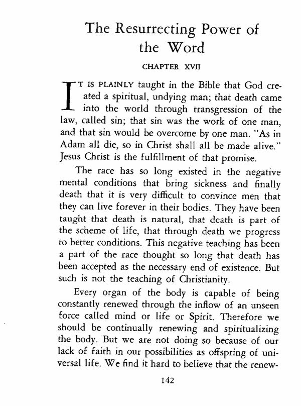 The race has so long existed in the negative mental conditions that bring sickness and finally death that it is very difficult to convince men that they can live forever in their bodies. They have been taught that death is natural, that death is part of the scheme of life, that through death we progress to better conditions. This negative teaching has been a part of the race thought so long that death has been accepted as the necessary end of existence. But such is not the teaching of Christianity.