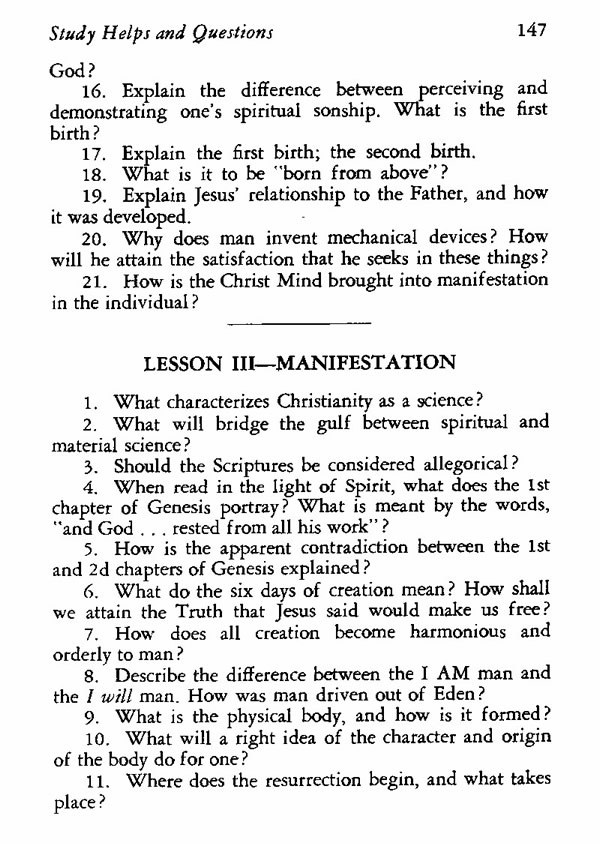 Contents: - Preface - The True Character of Being - Statements for the Realization of Divine Mind - Being's Perfect Idea - Statements for the Realization of the Son of God - Manifestation - "I AM" Realizations - Formative Power of Thought - Affirmations for Right Thinking - How to Control Thought - Cleansing and Purifying Statements - The Word - Power of Words - Spirituality or Prayer and Praise - Living Words to Quicken Spirituality - Establishing the Perfect Substance - Faith - Faith Affirmations - Imagination - Perfection in Form Established - Will and Understanding - Establishment of Will and Understanding - Judgment and Justice - Judgment and Justice Statements - Love - Love Demonstrated - Study Helps and Questions - Index -