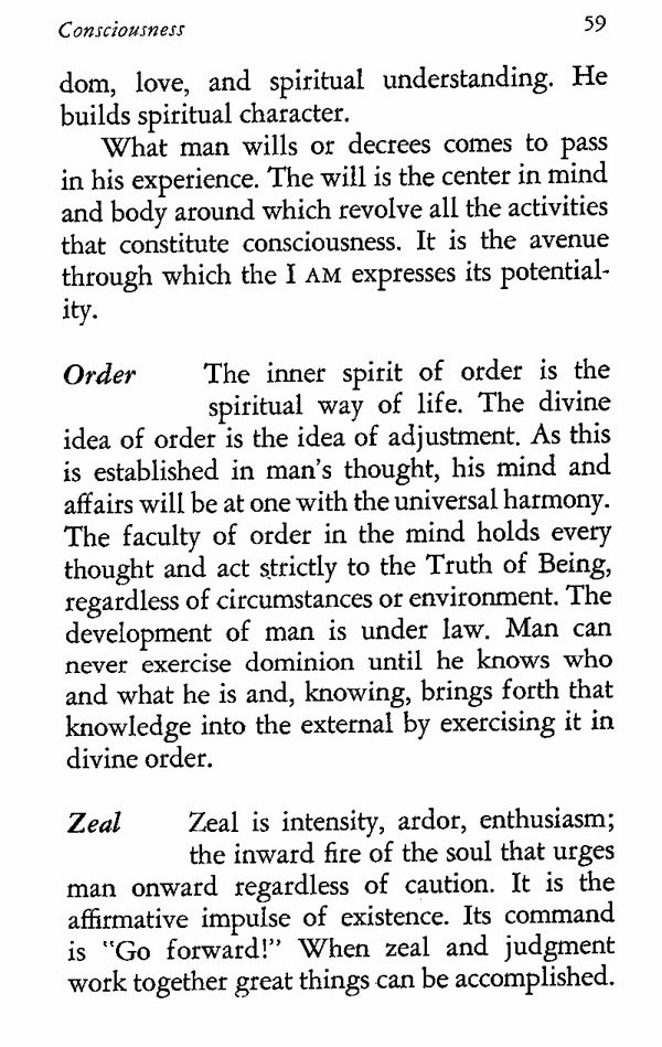 What man wills or decrees comes to pass in his experience. The will is the center in mind and body around which revolve all the activities that constitute consciousness. It is the avenue through which the I AM expresses its potentiality.