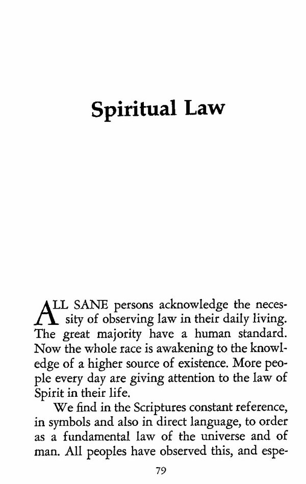 ALL SANE persons acknowledge the necessity of observing law in their daily living. The great majority have a human standard. Now the whole race is awakening to the knowledge of a higher source of existence. More people every day are giving attention to the law of Spirit in their life.