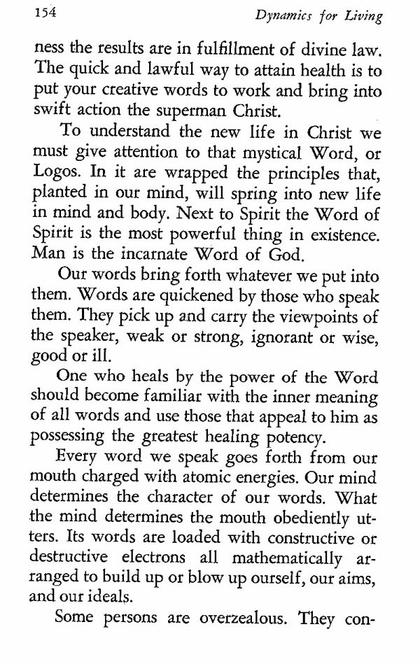 To understand the new life in Christ we must give attention to that mystical Word, or Logos. In it are wrapped the principles that, planted in our mind, will spring into new life in mind and body. Next to Spirit the Word of Spirit is the most powerful thing in existence. Man is the incarnate Word of God.