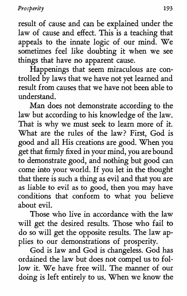 Those who live in accordance with the law will get the desired results. Those who fail to do so will get the opposite results. The law applies to our demonstrations of prosperity.