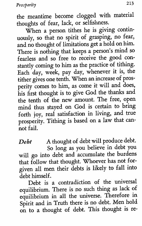 A thought of debt will produce debt. So long as you believe in debt you will go into debt and accumulate the burdens that follow that thought. Whoever has not forgiven all men their debts is likely to fall into debt himself.
