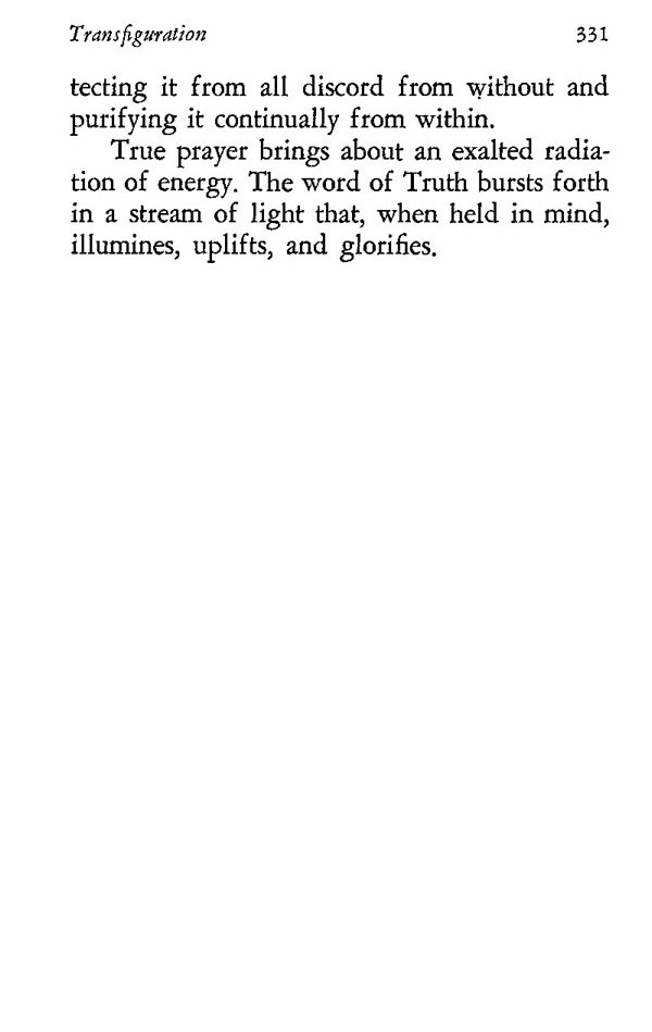 True prayer brings about an exalted radiation of energy. The word of Truth bursts forth in a stream of light that, when held in mind, illumines, uplifts, and glorifies.