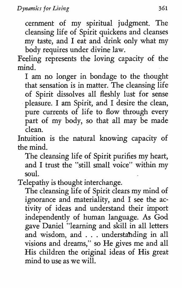 of my spiritual judgment. The cleansing life of Spirit quickens and cleanses my taste, and I eat and drink only what my body requires under divine law.