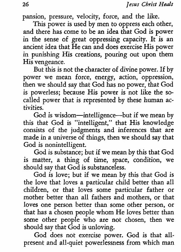 But this is not the character of divine power. If by power we mean force, energy, action, oppression, then we should say that God has no power, that God is powerless; because His power is not like the so-called power that is represented by these human activities.