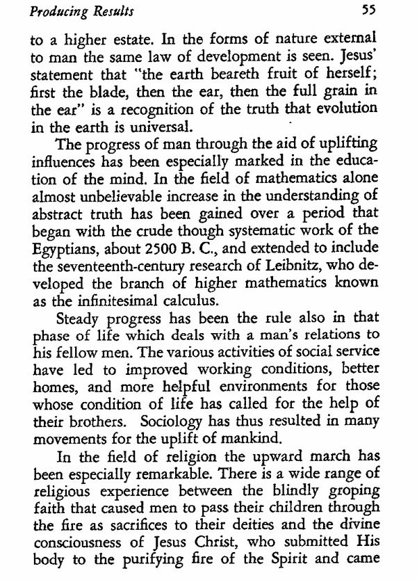 The progress of man through the aid of uplifting influences has been especially marked in the education of the mind. In the field of mathematics alone almost unbelievable increase in the understanding of abstract truth has been gained over a period that began with the crude though systematic work of the Egyptians, about 2500 B.C., and extended to include the seventeenth-century research of Leibnitz, who developed the branch of higher mathematics known as the infinitesimal calculus.