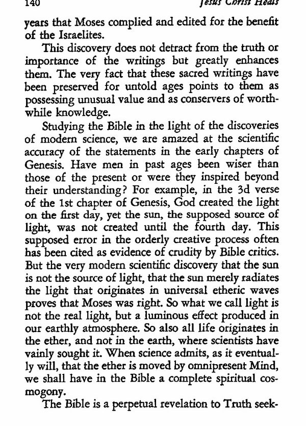 The idea that all the Bible writers were equally inspired is fallacious. They were from every walk of life, and their inspirations were modified by their own mental bias as well as their surroundings. Moreover some of the most important revelations of fundamental principles are undoubtedly the result of borrowing. Although Moses was a trained mystic and inspirational writer, he did not originate all the allegories found in the books that bear his name. It is obvious from the testimony of religious records antedating the Hebrew Scriptures by thousands of