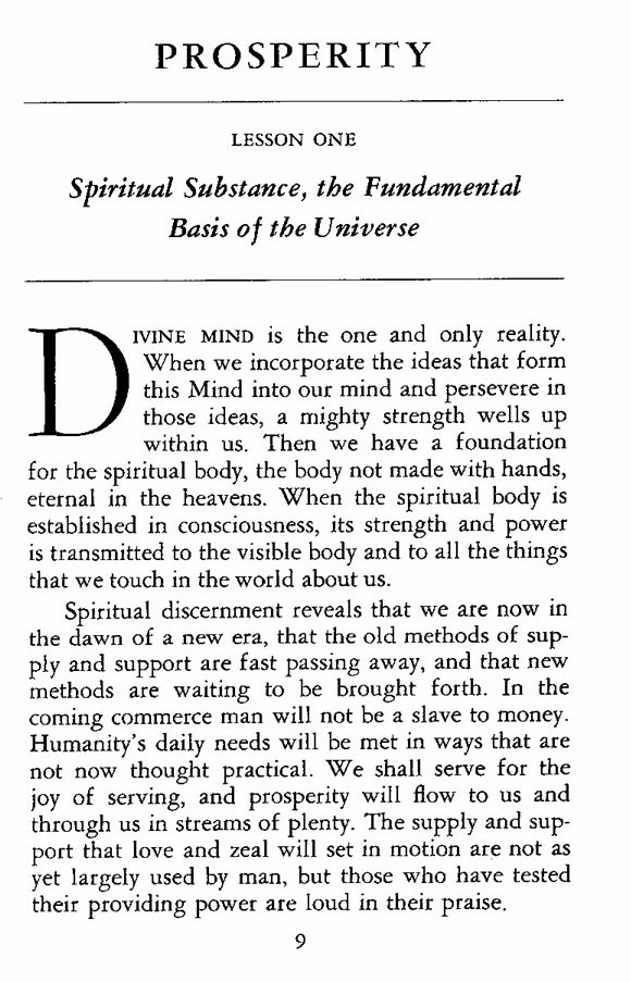 DIVINE MIND is the one and only reality. When we incorporate the ideas that form this Mind into our mind and persevere in those ideas, a mighty strength wells up within us. Then we have a foundation for the spiritual body, the body not made with hands, eternal in the heavens. When the spiritual body is established in consciousness, its strength and power is transmitted to the visible body and to all the things that we touch in the world about us.