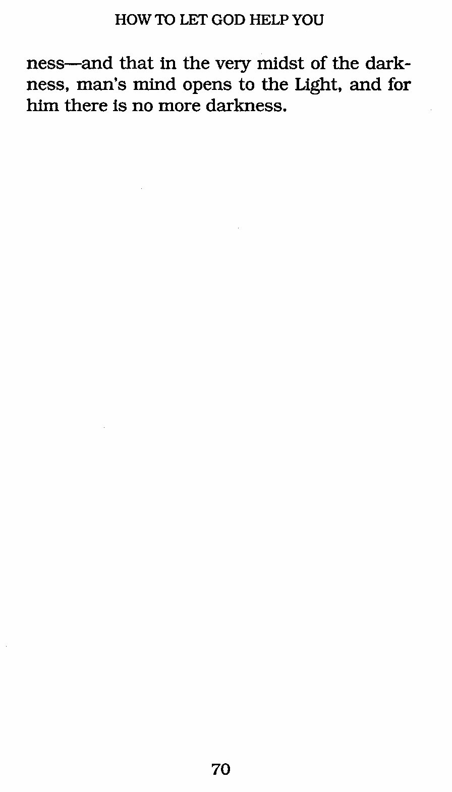 and that in the very midst of the darkness, man's mind opens to the Light, and for him there is no more darkness.