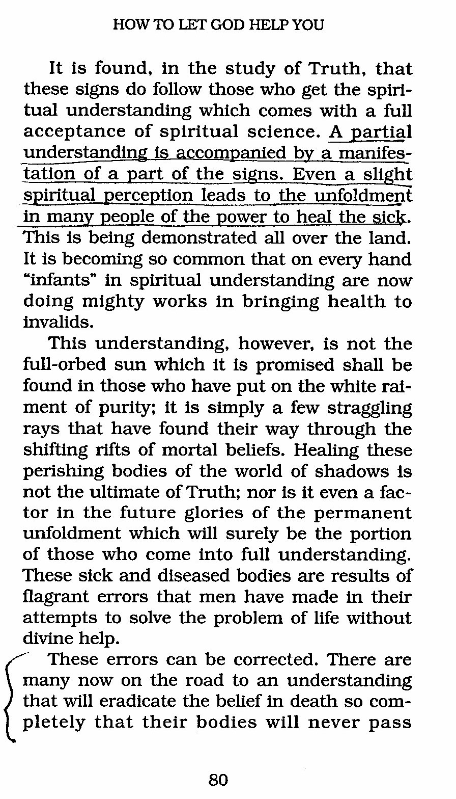 These errors can be corrected. There are many now on the road to an understanding that will eradicate the belief in death so completely that their bodies will never pass