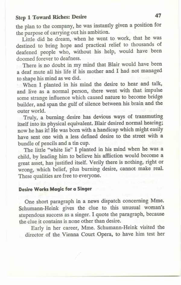 DESIRE had commenced to pay dividends, but the victory was not yet complete. The boy still had to find a definite and practical way to convert his handicap into an equivalent asset.