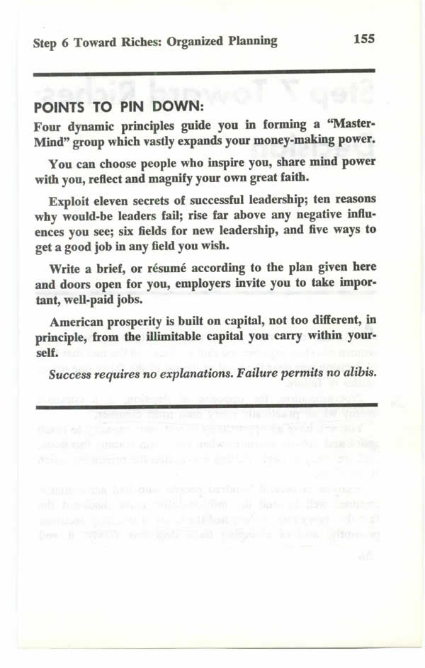 Contents - What Do You Want Most? - Tributes From Great American Leaders - Publisher's Preface - Author's Preface - Introduction - Desire - Faith - Auto-Suggestion - Specialized Knowledge - Imagination - Organized Planning - Decision - Persistence - Power of The Master Mind - The Mystery of Sex Transmutation - Subconscious Mind - Brain - Sixth Sense - How To Outwit The Six Ghosts of Fear