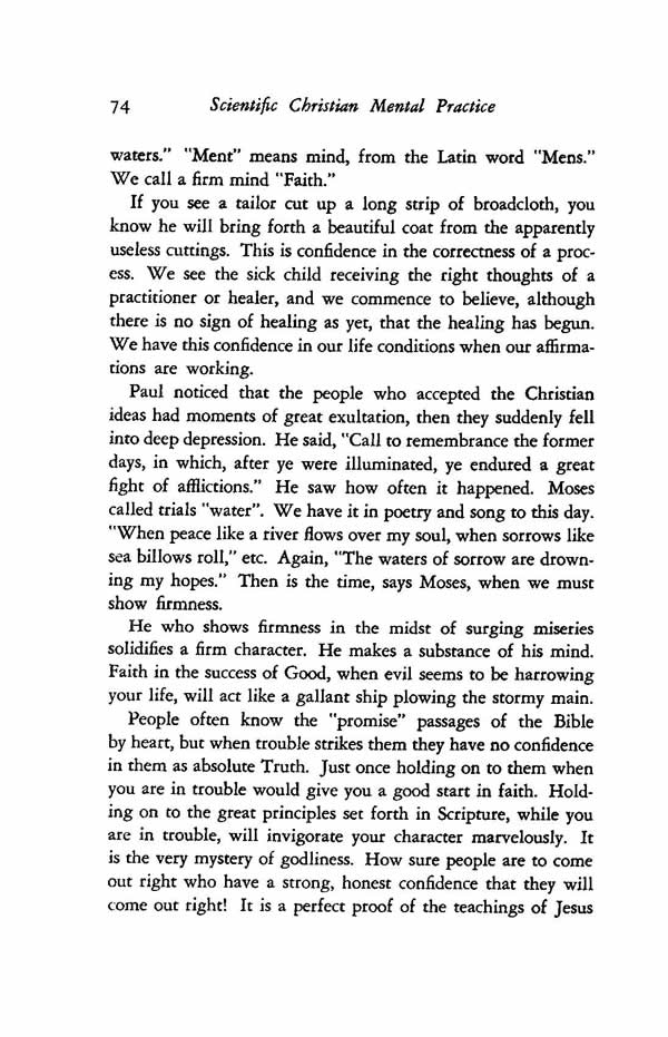 waters." "Ment" means mind, from the Latin word "Mens." We call a firm mind "Faith."