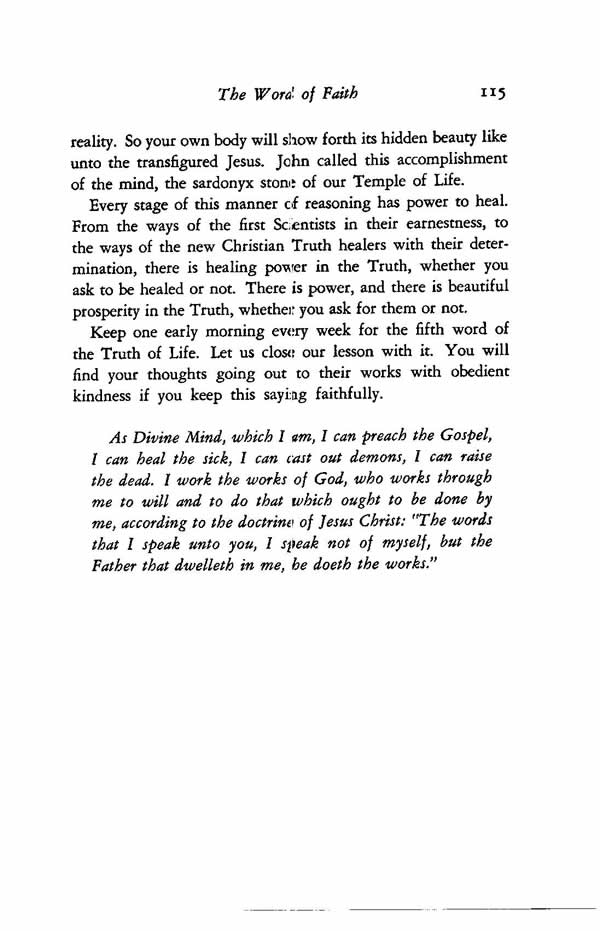 Keep one early morning every week for the fifth word of the Truth of Life. Let us close our lesson with it. You will find your thoughts going out to their works with obedient kindness if you keep this saying faithfully.