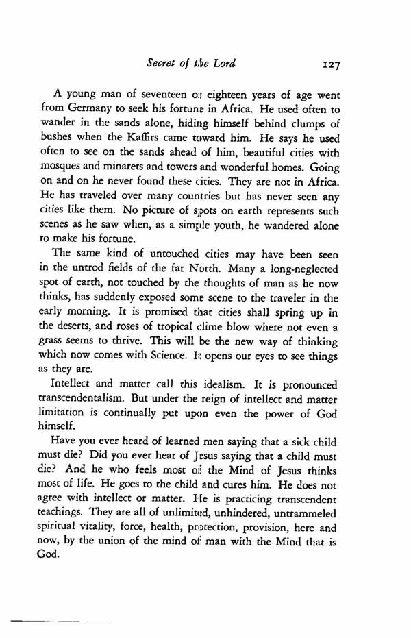 A young man of seventeen or eighteen years of age went from Germany to seek his fortune in Africa. He used often to wander in the sands alone, hiding himself behind clumps of bushes when the Kaffirs came toward him. He says he used often to see on the sands ahead of him, beautiful cities with mosques and minarets and towers and wonderful homes. Going on and on he never found these cities. They are not in Africa. He has traveled over many countries but has never seen any cities like them. No picture of spots on earth represents such scenes as he saw when, as a simple youth, he wandered alone to make his fortune.