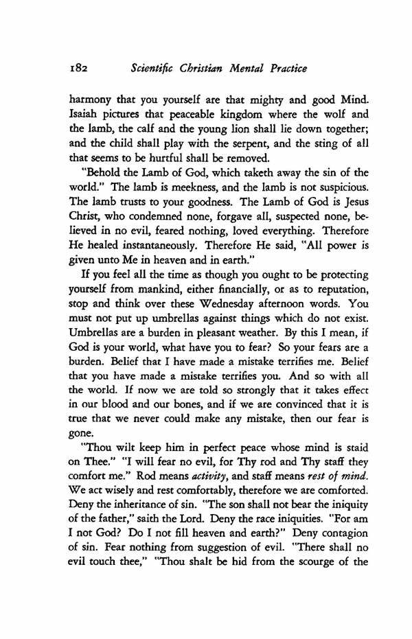 harmony that you yourself are that mighty and good Mind. Isaiah pictures that peaceable kingdom where the wolf and the lamb, the calf and the young lion shall lie down together; and the child shall play with the serpent, and the sting of all that seems to be hurtful shall be removed.