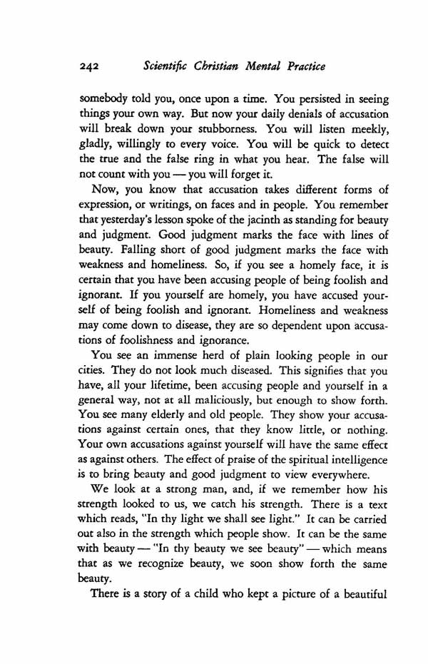Now, you know that accusation takes different forms of expression, or writings, on faces and in people. You remember that yesterday's lesson spoke of the jacinth as standing for beauty and judgment. Good judgment marks the face with lines of beauty. Falling short of good judgment marks the face with weakness and homeliness. So, if you see a homely face, it is certain that you have been accusing people of being foolish and ignorant. If you yourself are homely, you have accused yourself of being foolish and ignorant. Homeliness and weakness may come down to disease, they are so dependent upon accusations of foolishness and ignorance.