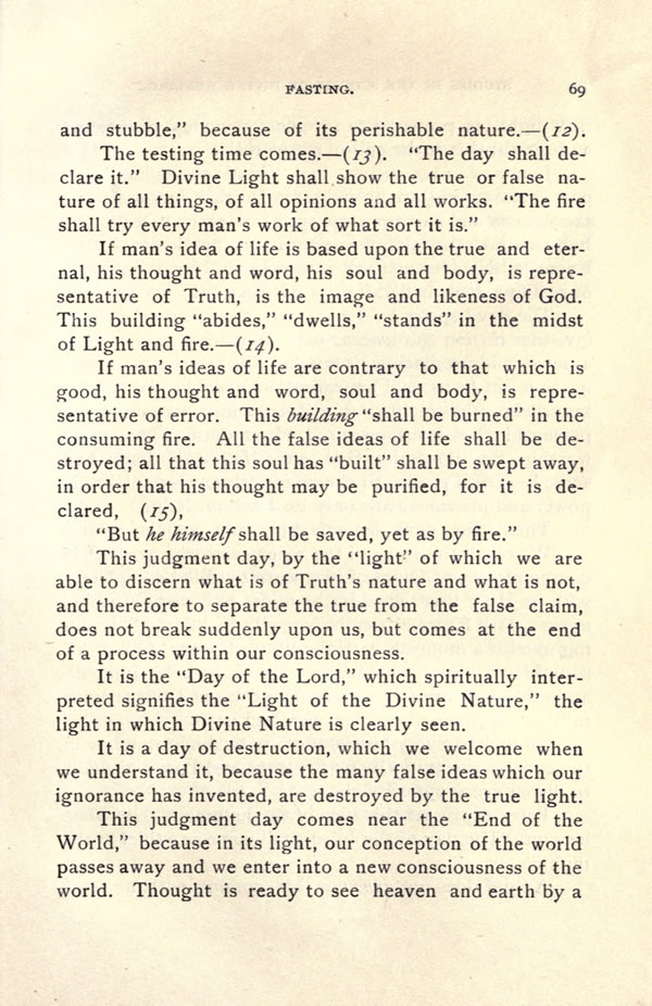 This judgment day comes near the "End of the World," because in its light, our conception of the world passes away and we enter into a new consciousness of the world. Thought is ready to see heaven and earth by a