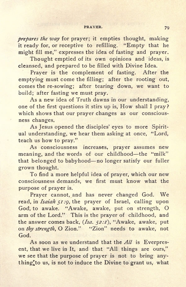 As a new idea of Truth dawns in our understanding, one of the first questions it stirs up is, How shall I pray? which shows that our prayer changes as our consciousness changes.