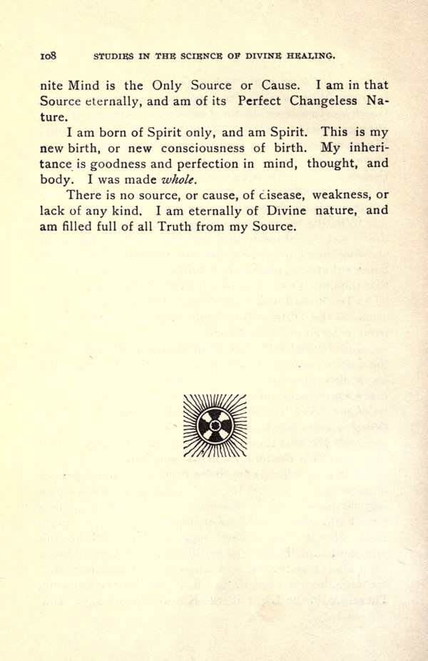 There is no source, or cause, of disease, weakness, or lack of any kind. I am eternally of Divine nature, and am filled full of all Truth from my Source.