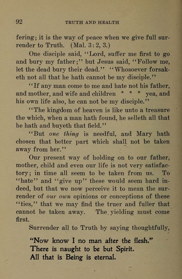 suffering; it is the way of peace when we give full surrender to Truth. (Mal. 3: 2, 3.)